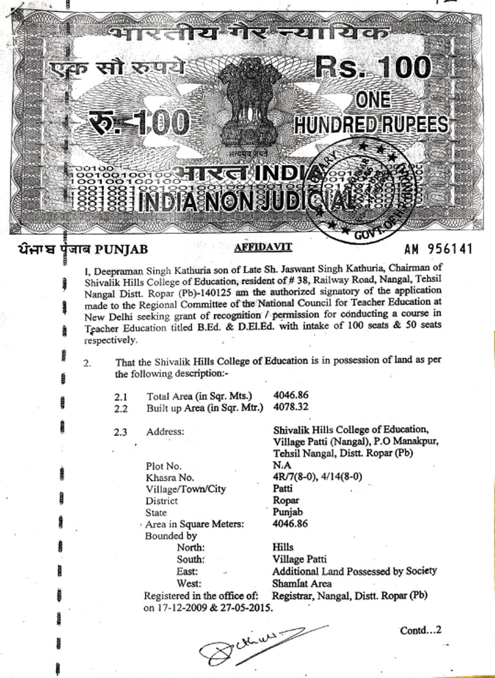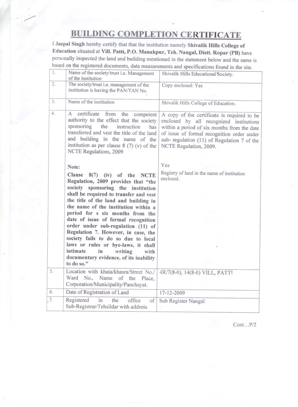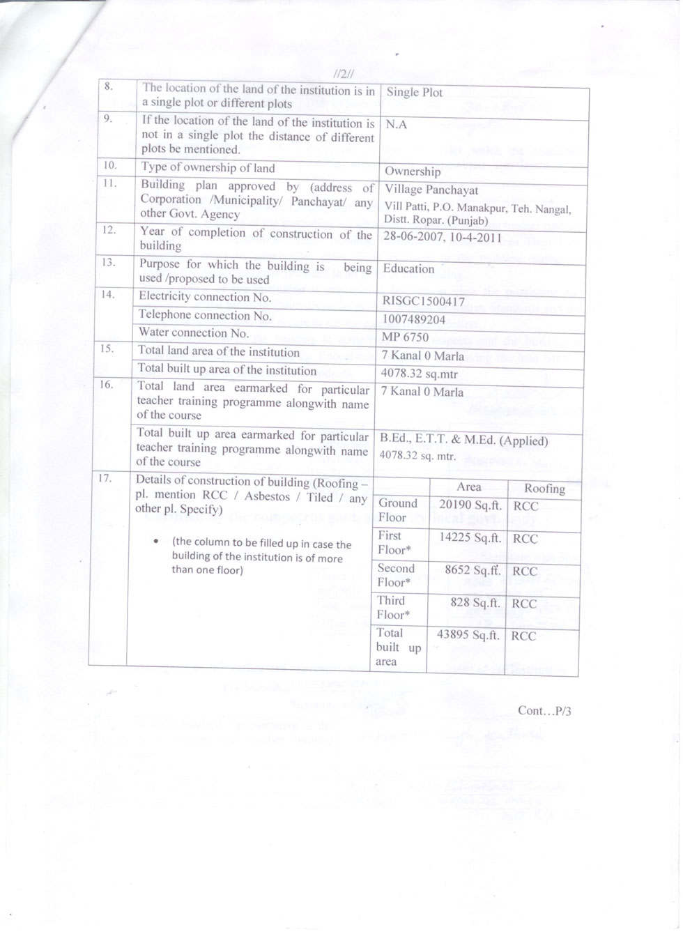 | 1 | B.Ed Course | : | 2 Units (100 students) |