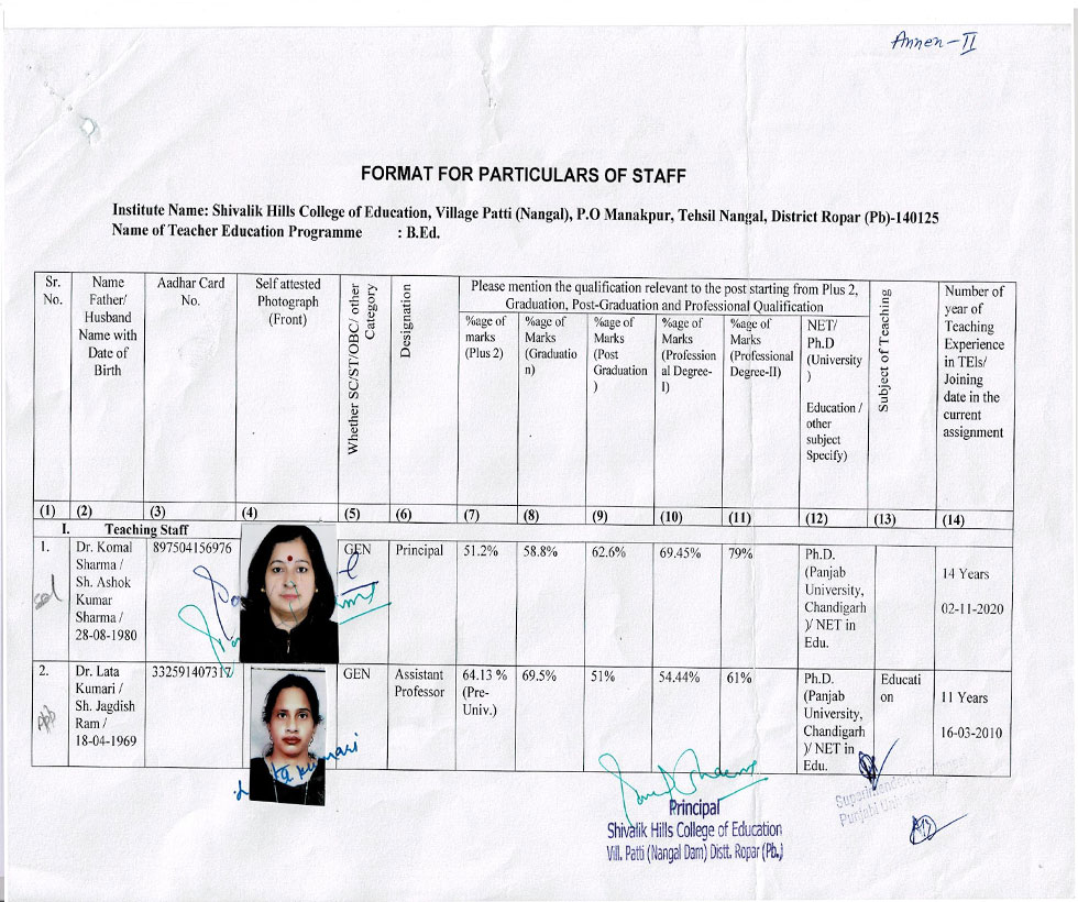 | 1 | Ms. Jaspreet Kaur | : | Asstt. Professor in Teaching of S.St. |